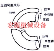 | 圖1.管子彎曲時(shí)的應(yīng)力分析圖 圖2.旋轉(zhuǎn)拉彎成形 圖3.芯軸使用時(shí)的加工范圍 |