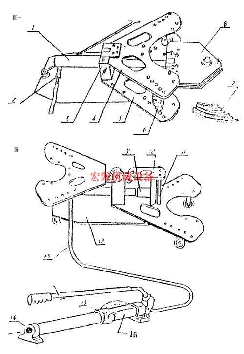 由手動泵(電動泵)(16),高壓;輸油管(13),快速接頭(2), 工作缸(1),彎排部件(包括上、下花板,夾板模頭,直角模頭,輥柱,